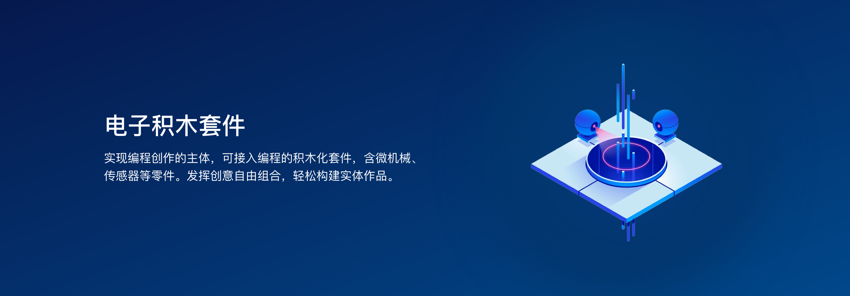 一些编程命令,几个智能硬件,实现无限想象。从听觉、视觉、触觉等方面提供主题活动设计,如音乐创作工作坊、「魔法」体验、机器人制作、编程比赛等。